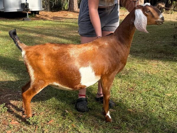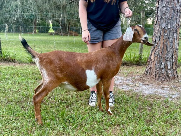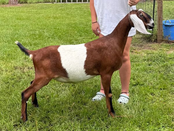 Missoula is a beautiful young doe who excels in dairy strength, Width, and Length. Missoula is the daughter of the beautiful J&M Hideaway Ace just Montana the 2024 14th place 2 year old , Montana is the daughter of